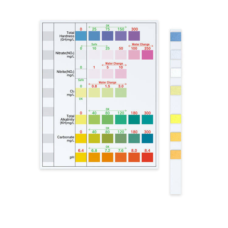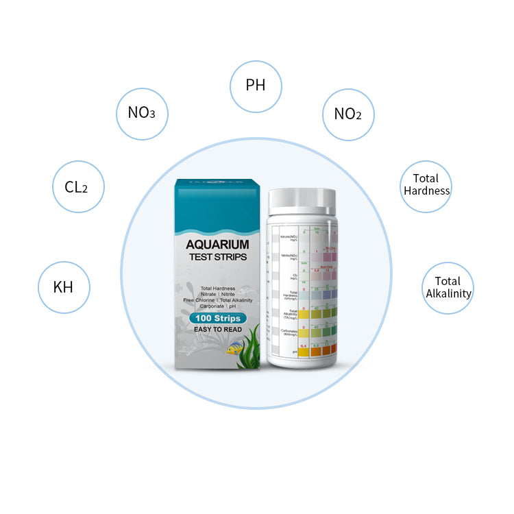 Le kit de bandelettes test aquarium 7-en-1 permet d’analyser rapidement les paramĂštres essentiels pour la santĂ© de vos poissons et plantes : pH, ammoniac (NH₃/NH₄âș), nitrites (NO₂⁻), nitrates (NO₃⁻), duretĂ© (GH), alcalinitĂ© (KH) et chlore.