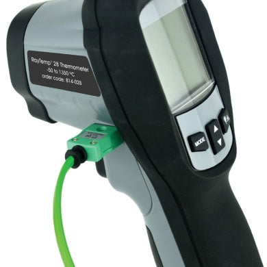 I tillegg er Raytemp® 8 allsidig, siden den inneholder en Termoelement sonde av type k (sonde ikke levert) . Dette tillater bruk med en rekke termoelementprober for å måle lufttemperaturer, væsker og overflater.