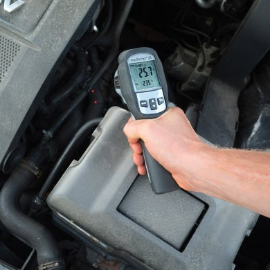 Raytemp® 8 er nå utstyrt med en Åtte -punkts sirkulær laserindikator , tillater presis målretting av måleområdet, justering av diameteren som en funksjon av avstanden. Henne Tre knapper tastatur Lar deg velge ° C/° F og maks/min, og for å vise forskjellen mellom maksimale og minste temperaturer, så vel som gjennomsnittstemperaturen.